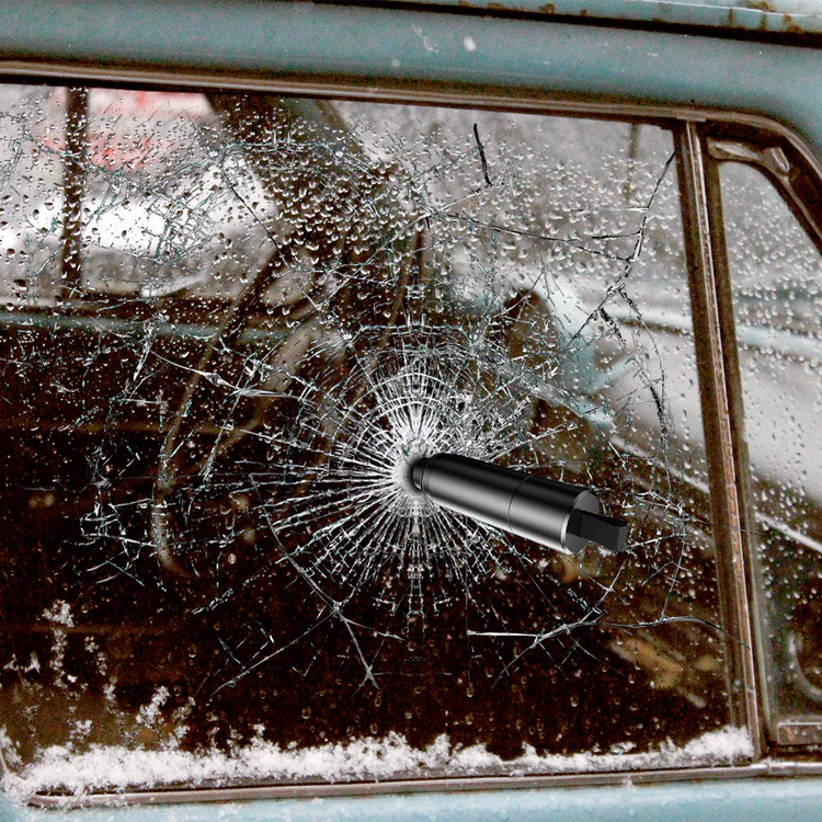 The Life Hammer uses a tungsten steel head and a gun working principle to shatter car windows with the push of a button. It also has a stainless steel blade to cut seat belts quickly and safely.